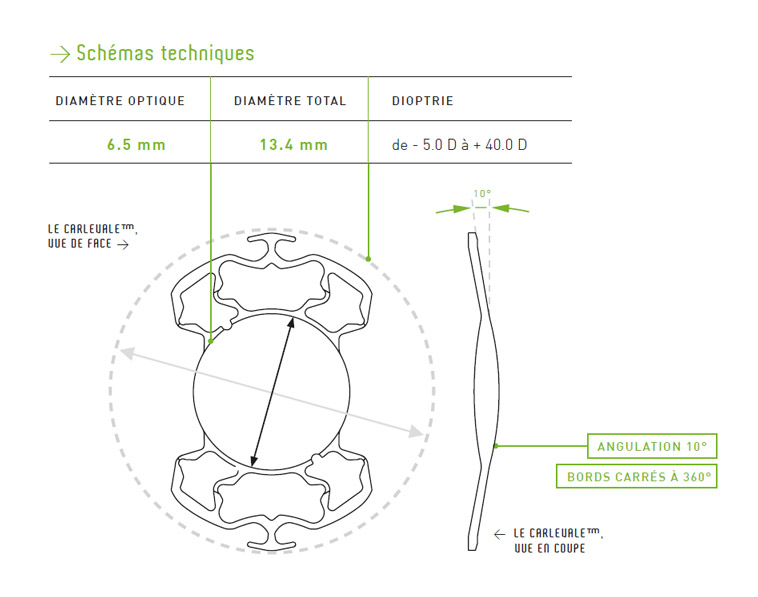 L’implant intraoculaire Carlevale™ est un dispositif médical de classe IIB (fabricant : Omni Lens Pvt Ltd / CE 2460), fourni avec un injecteur (fabricant : Medical AG / CE 0482) sous forme d’un kit (assemblé par MD-TECH). Cette lentille est utilisée pour une implantation dans la chambre postérieure selon les méthodes chirurgicales traditionnelles d’implantation de lentilles à fixation sclérale.